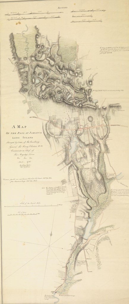 This meticulously drawn military map captures one of the critical landscape corridors of Revolutionary-era Long Island, charted at a moment when British command sought to secure strategic routes and defenses. Rendered with precision and purpose, it stands as both a geographic document and a vivid artifact of the shifting tides of the American Revolution.